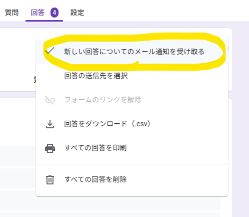 - 「新しい回答についてのメール通知を受け取る」をオン