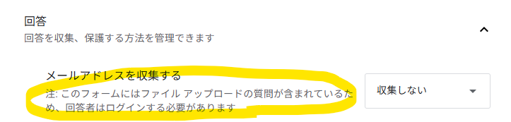 フォームを開くとログイン要求が出るメール収集 or 回答制限がオンチェックを外す