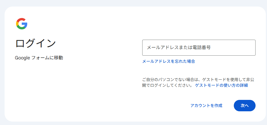 フォームを開こうとすると、「Googleにログインしてください」というメッセージが出て、