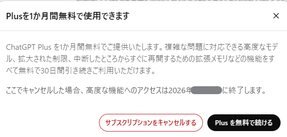 ChatGPT Plusは、解約してもすぐに使えなくなるわけではありません