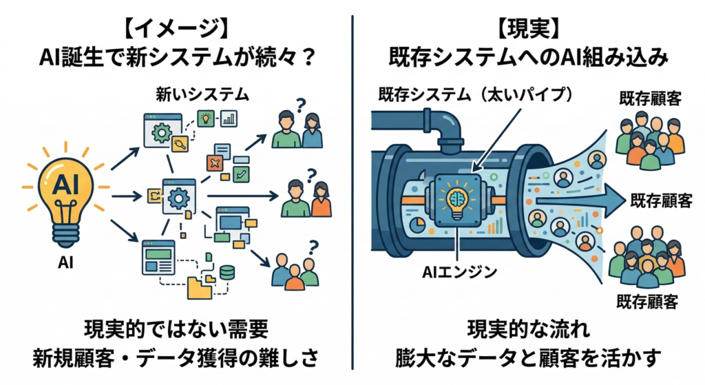 AIが誕生したからといって、全く新しいシステムへの需要が次々生まれるかというと、実はそう簡単ではありません。