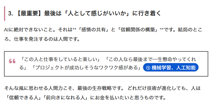 散々このボタンの「お節介」について書いてきましたが、視点を変えれば、これはAIがその記事の文脈を理解し、価値を認めた証拠でもあります。